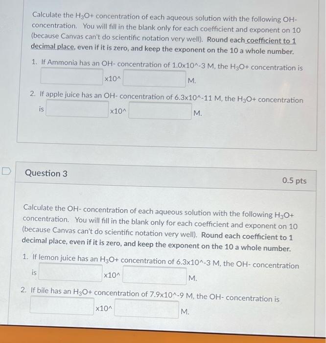Solved Calculate The H3o Concentration For Each Ph Chegg Com